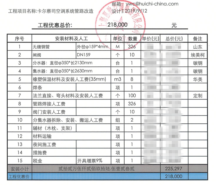 空調系統管道改造報價單