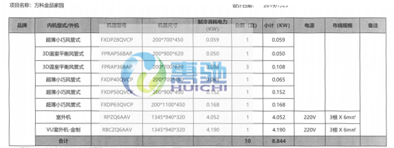 空調系統技術配置表